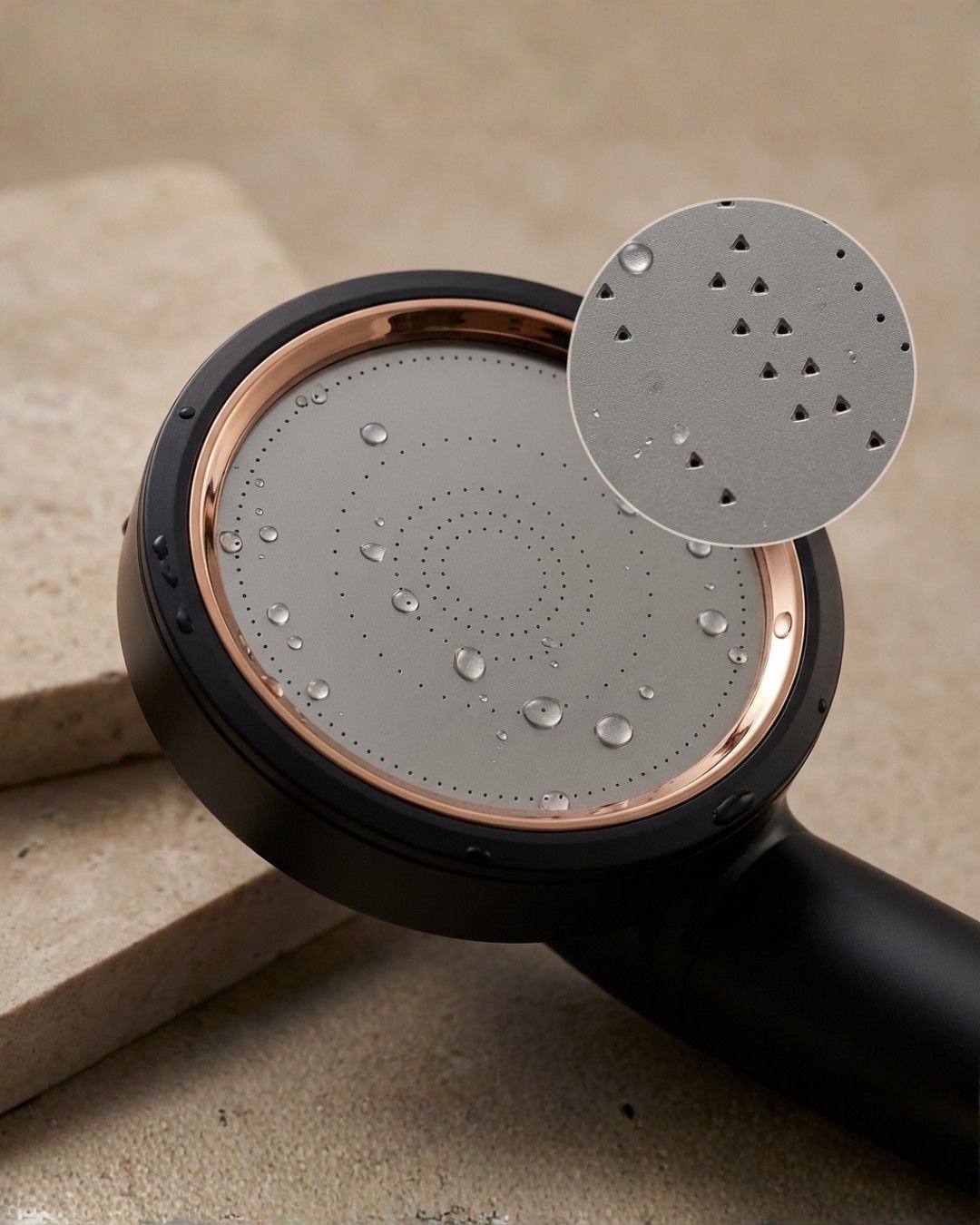 High-pressure spray plate engineered for balanced flow and negative ion atomisation.