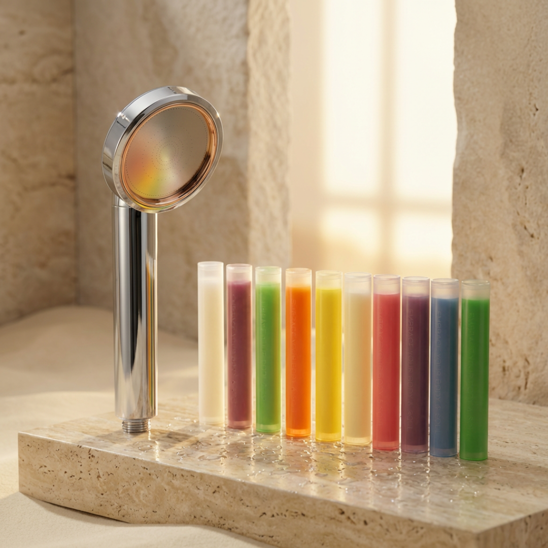 Faster Shower. Neutralise chlorine. Improve skin glow and hair comfort. Upgrade your daily shower ritual.