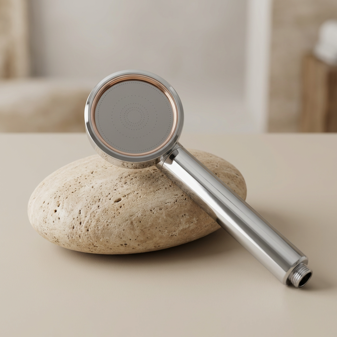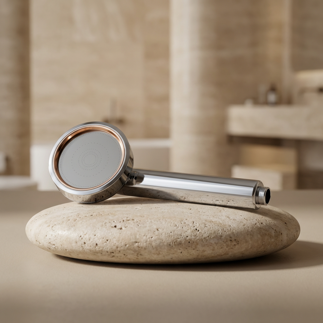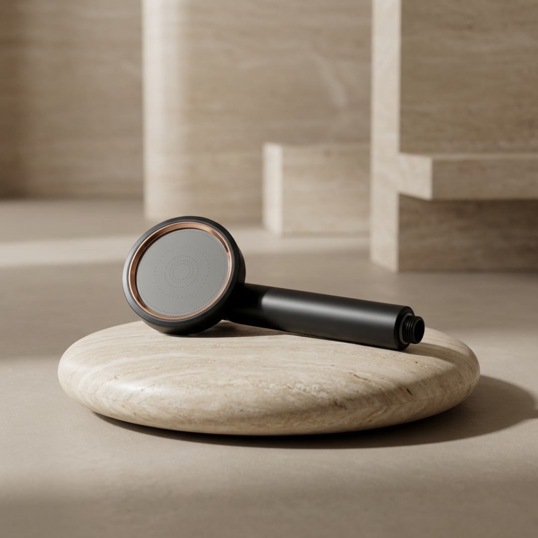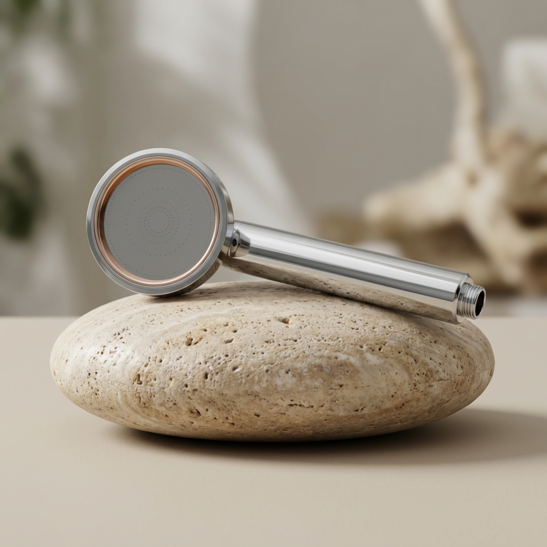 SUHAE uses Vitamin C infusion to help neutralise chlorine instantly as water flows through the system. This chemical reaction converts chlorine into less reactive compounds before the water touches your skin, making the shower feel gentler and more comfortable.